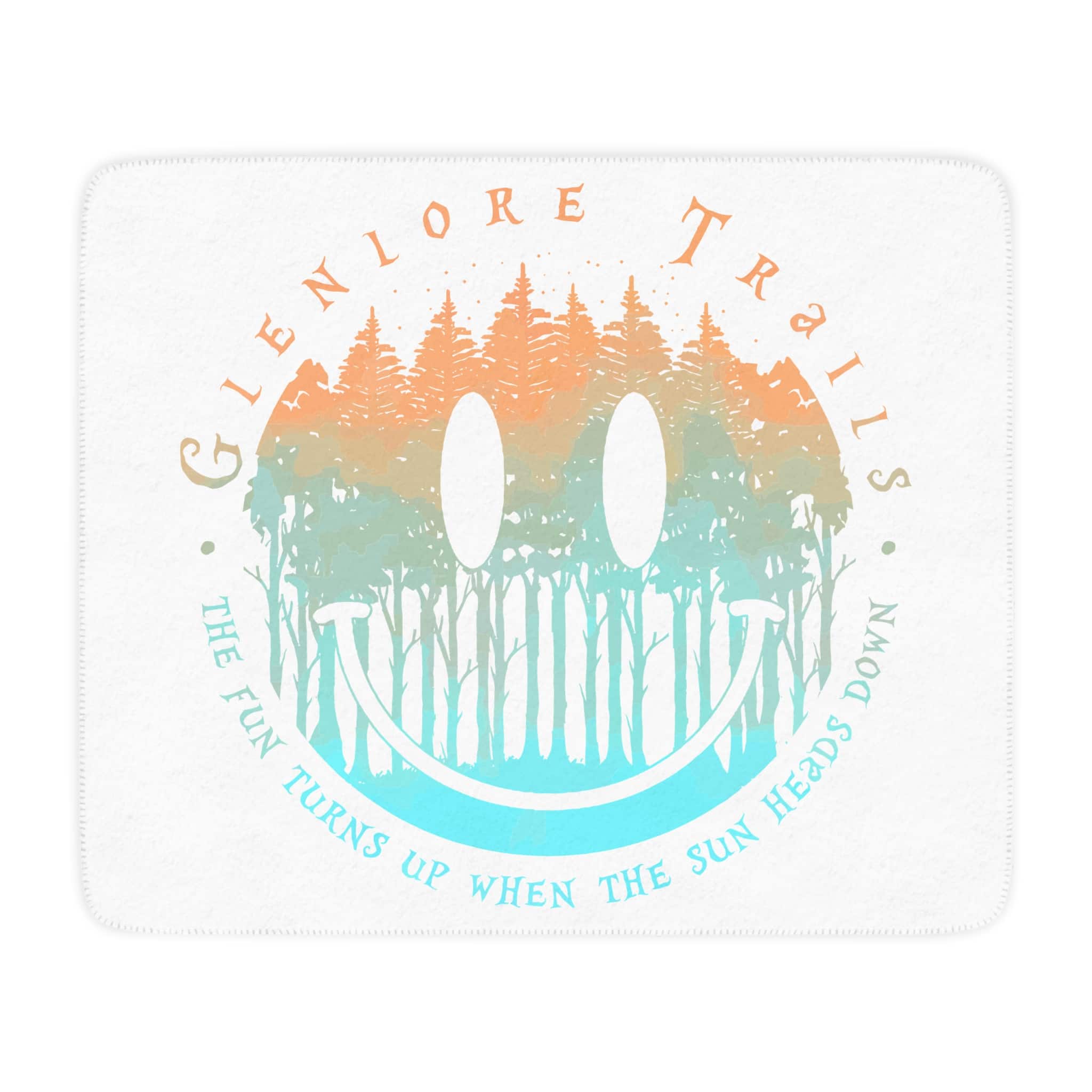 Iconic Glenlore Trails forest-smile design in warm, glowing tones