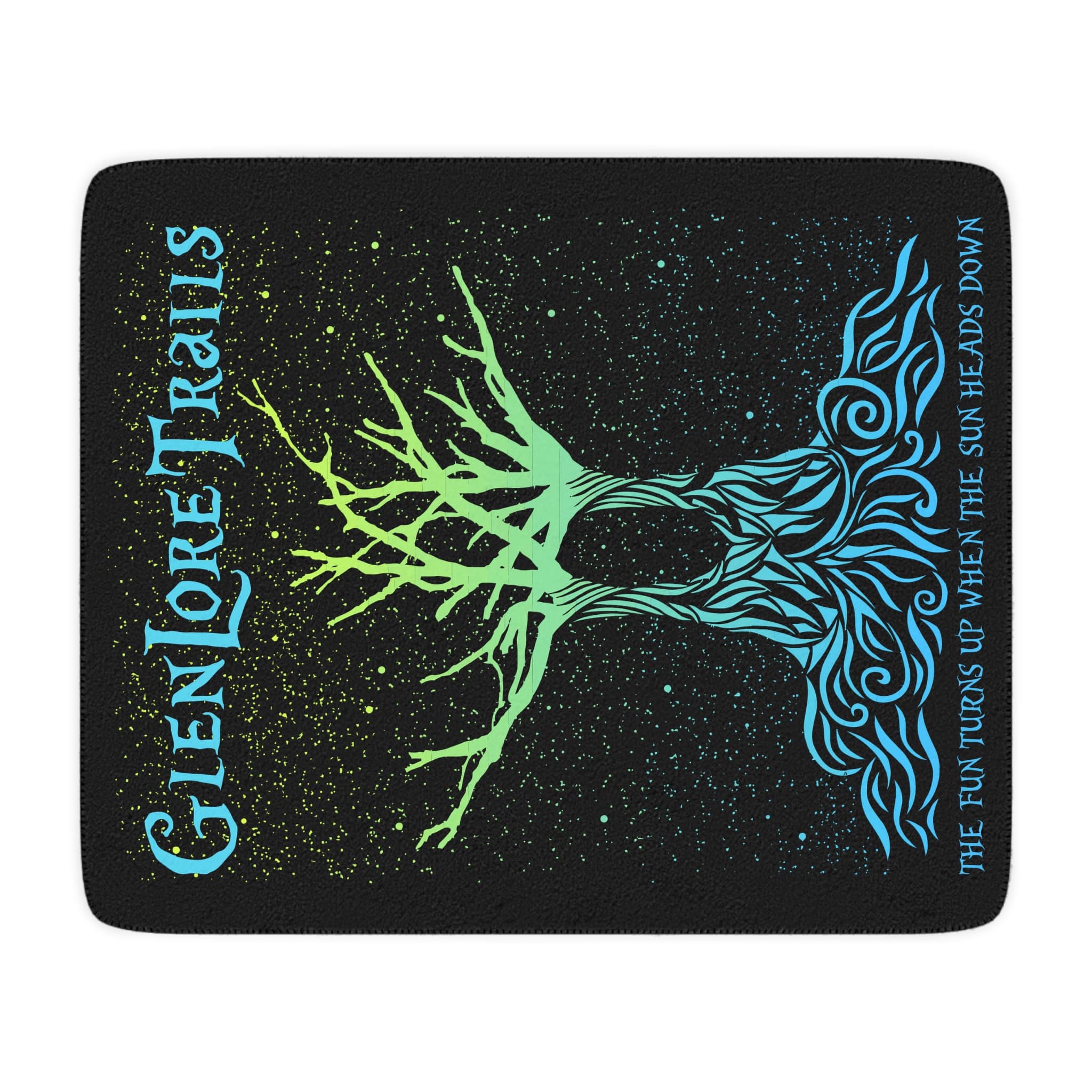 Keep it cozy all year round with this super-soft sherpa blanket. Great for snuggles by the fireplace, picnics, and a quick power nap. Also good for keeping warm along your favorite trails.. 🙂 The back has a tan sherpa lining. Rounded corners and decorative stitching keep everything sleek and smooth.